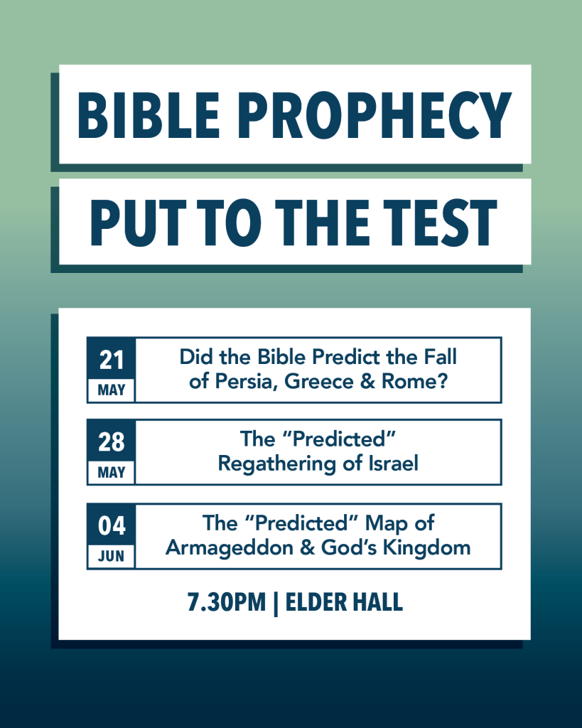 Christadelphian Hall, Cnr Manning Rd and Sunnymeade Drive, Aberfoyle at 6:00 pm and will also be streamed on YouTube using this link; https://www.youtube.com/@aberfoyleparkchristadelphi1518/featured
